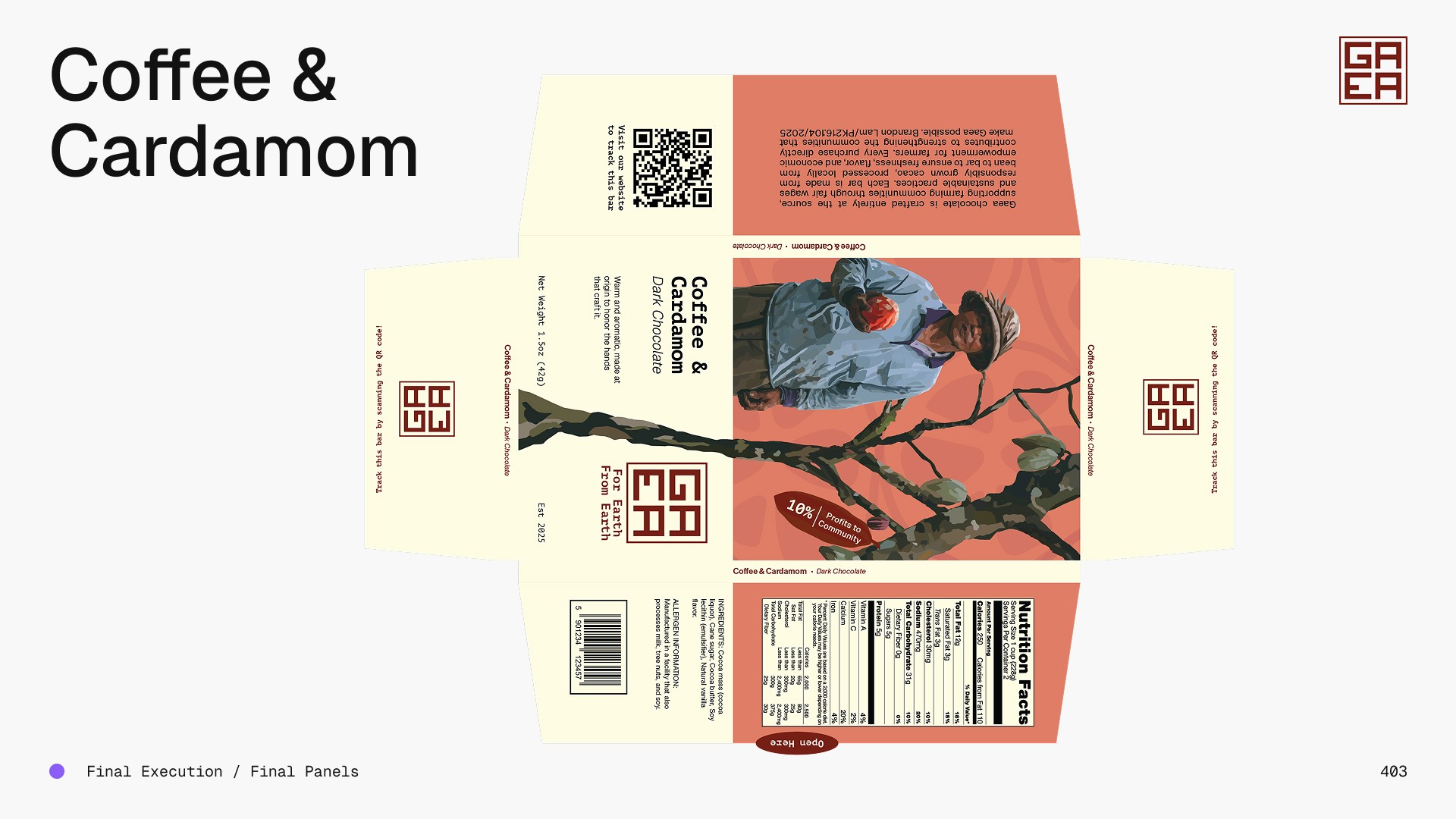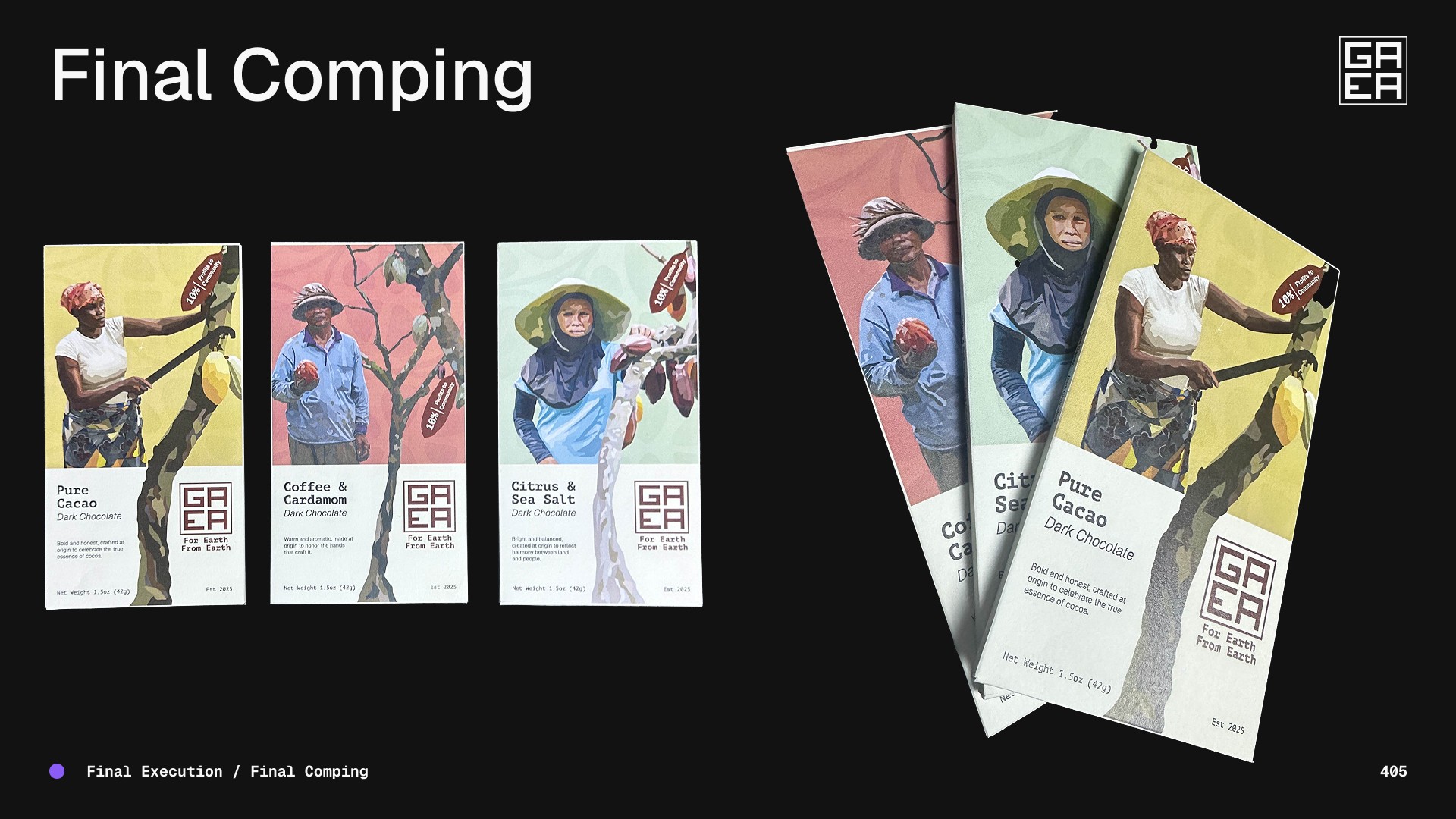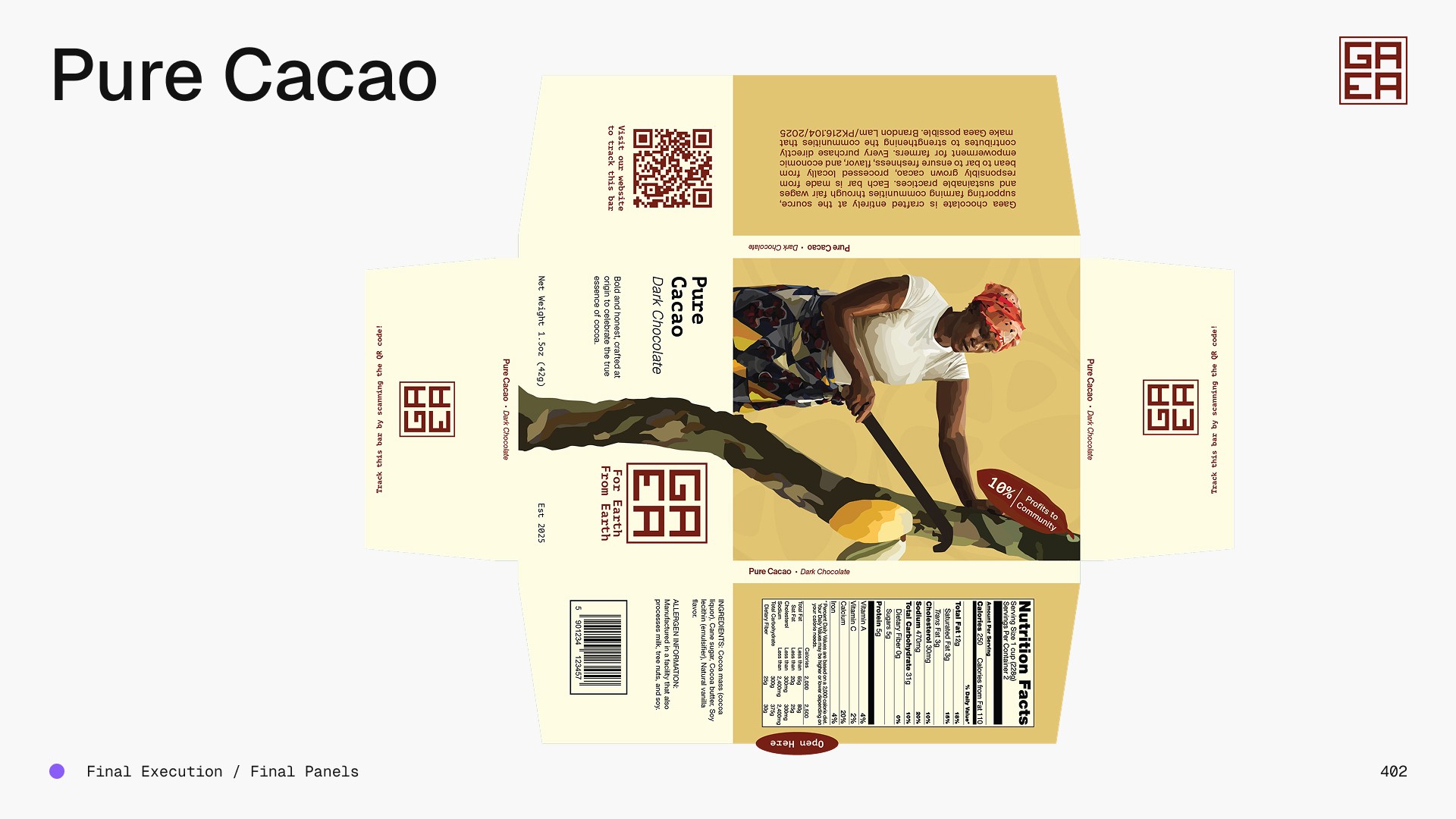 A conceptual chocolate packaging project focused on strengthening farming communities.